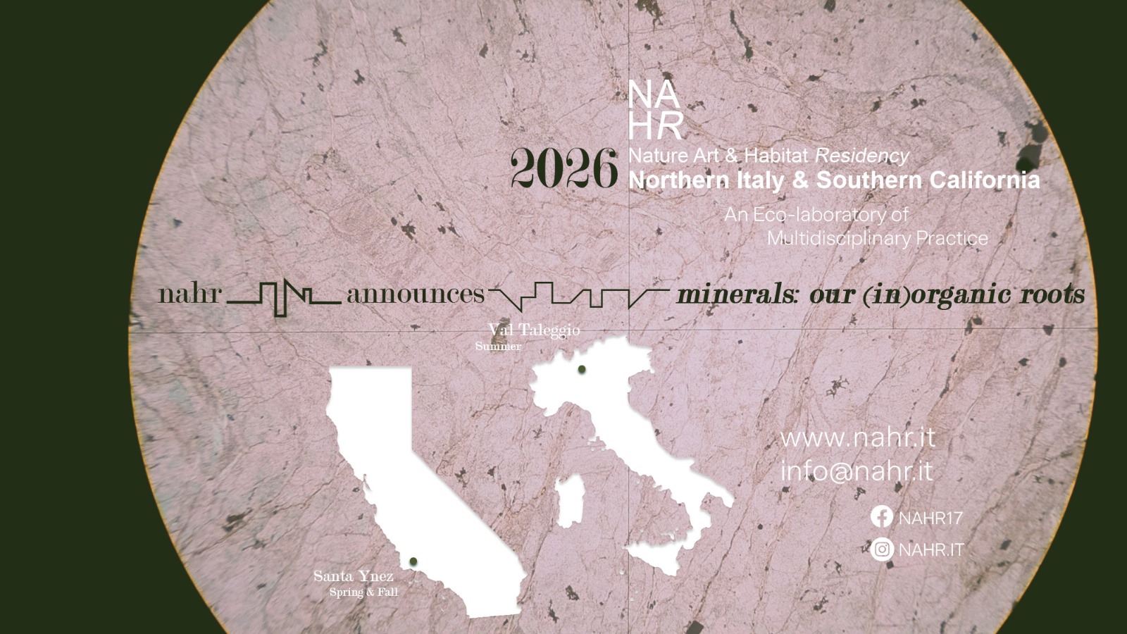 see Italian text for full CalendarNature, Art and Habitat Residency (NAHR,) organizes a multidisciplinary workshop to kick-off the summer residency programme titled: 'MINERALS: Our (in)organic Roots