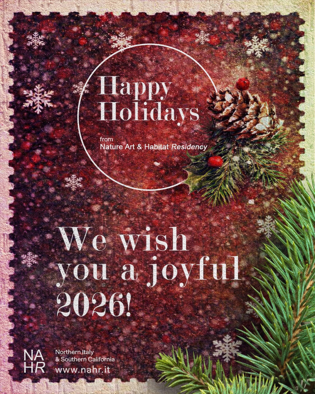 In considerazione delle minacce climatiche attuali associate all’era contemporanea dell’Antropocene e sostenuto da una forte sensibilità per la natura quale fonte di ispirazione e misura delle risorse disponibili, NAHR si propone di investigare i profondi legami tra gli organismi viventi alla ricerca di uno sviluppo resiliente in cui esseri umani e natura convivono in reciproco supporto.