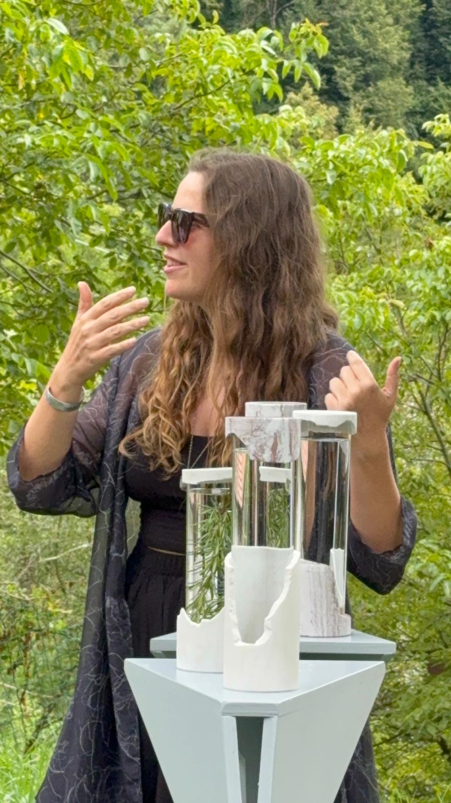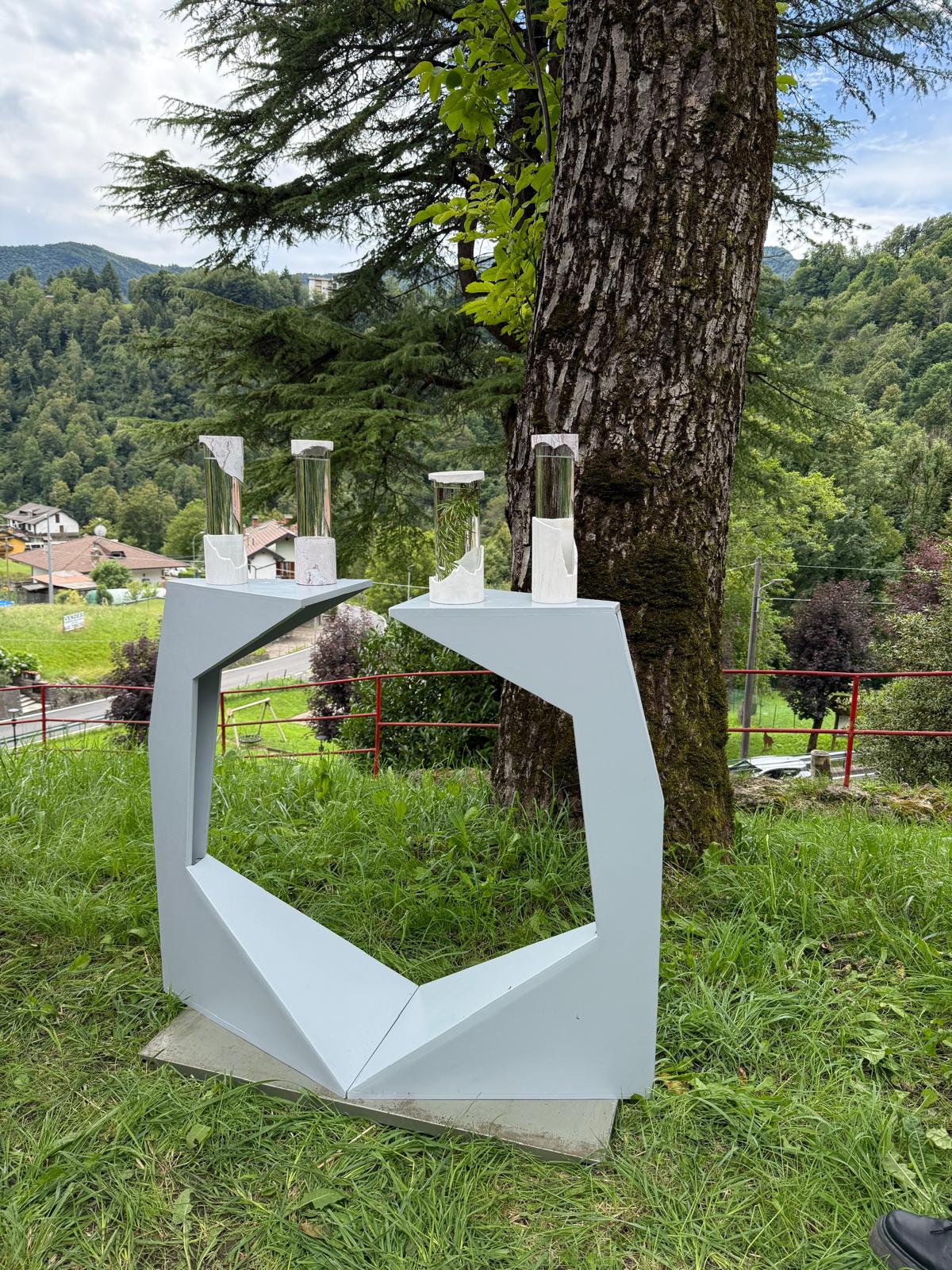 Petraforma è un oggetto che nasce dall'incontro tra due valli italiane, la Val d'Ossola e la Val Taleggio, e dalle loro rispettive identità geologiche. Attraverso una forma cilindrica minimale e grezza, l'opera mette in relazione tre materiali: la pietra, il vetro e l'acqua. Il vetro contiene e collega, l'acqua trasforma, la pietra testimonia, i minerali incarnano l’essenza condivisa.